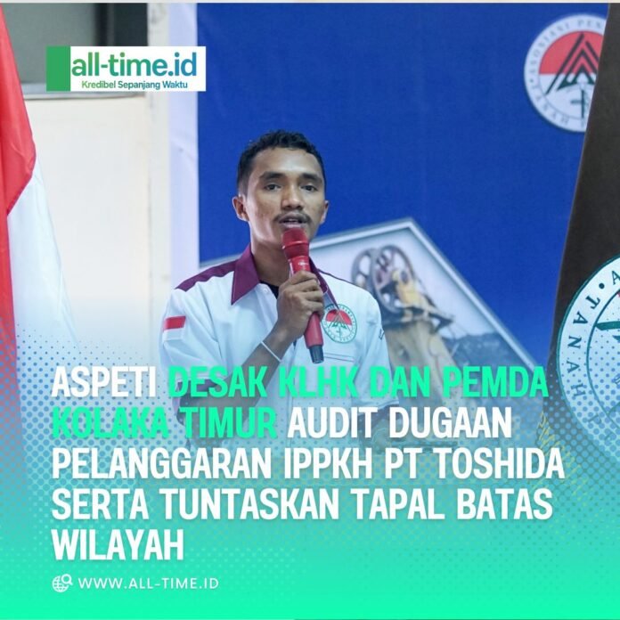 Jakarta, all-time.id — Asosiasi Penambang Tanah Pertiwi (ASPETI) melalui Ketua Bidang Advokasi Tambang, Muhammad Rizal Zulkarnain, mendesak Kementerian Lingkungan Hidup dan Kehutanan (KLHK) serta Pemerintah Daerah Kabupaten Kolaka Timur (Koltim) untuk segera menindaklanjuti dugaan pelanggaran Izin Pinjam Pakai Kawasan Hutan (IPPKH) oleh PT Toshida Indonesia, serta menuntaskan persoalan administratif dan batas wilayah hukum perizinan tambang yang hingga kini belum diselesaikan sejak pemekaran daerah.