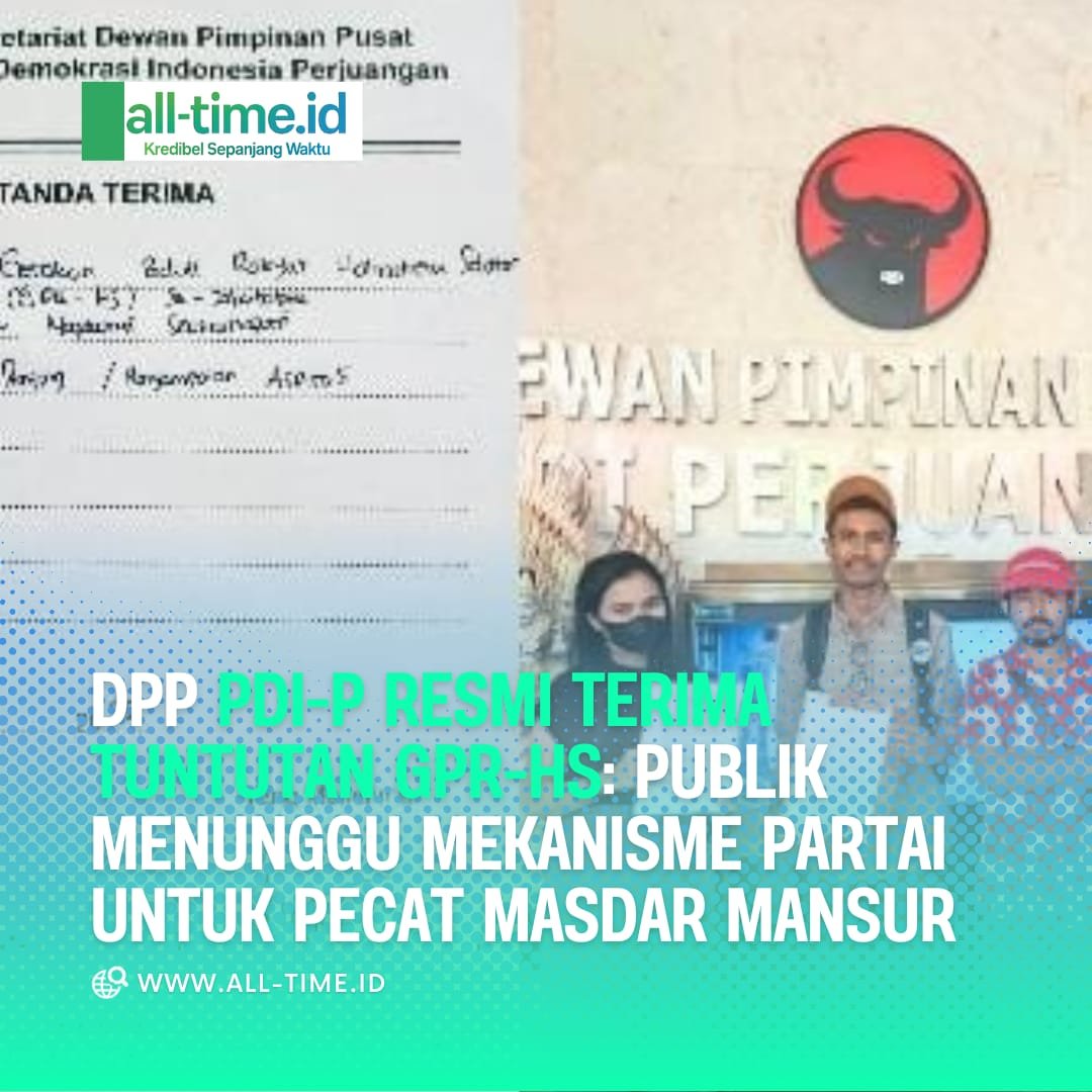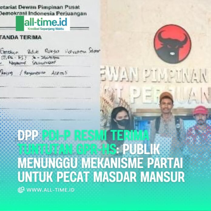 Jakarta, All-time.id – Gerakan Peduli Rakyat Halmahera Selatan (GPR-HS) menyampaikan langsung aspirasi rakyat terkait desakan pemecatan anggota DPRD Halmahera Selatan, Masdar Mansur, kepada Dewan Pimpinan Pusat (DPP) PDI Perjuangan di Jakarta. (09/25)